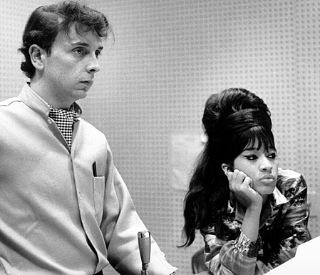 Spector ronnie ronetteLa primera de esta pequeña serie es una de las primeras cantantes con las que trabajó Spector, Veronica Bennett, voz principal de The Ronettes y que acabó siendo su esposa. Formadas en 1957, The Ronettes (Veronica con su hermana Estelle y su prima Nedra), después de una etapa en Colpix Records y de muchas actuaciones en Miami y New York, se hartaron de la escasa repercusión que tenían y Estelle contactó con Spector para hacer una audición. El productor no lo dudó y las fichó, aunque en realidad quería fichar solamente a Veronica. La madre de las hermanas se negó a ese trató y Spector tuvo que quedarse con las tres. La primera canción que grabaron no le gustó nada a Spector y la archivó. En 1963 por fin se publicó la sexta canción hecha junto al productor, «Be my baby» que se convirtió en un éxito al instante. La relación entre el grupo y el productor iba viento en popa.