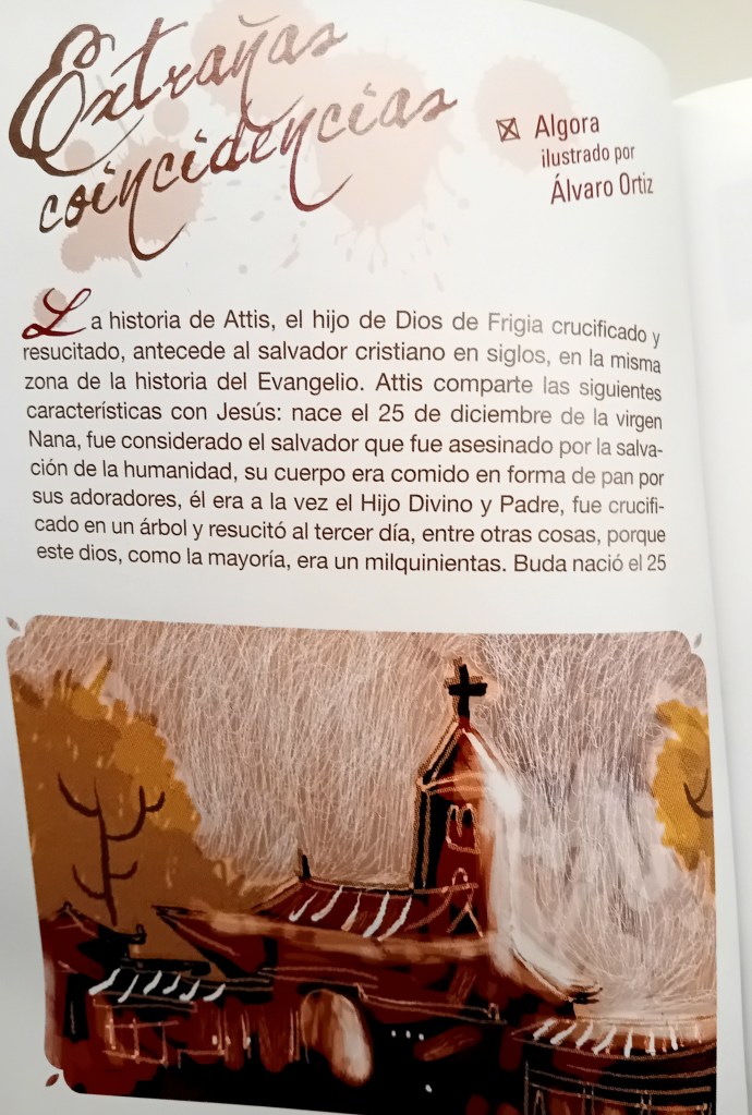Aquí va una nueva entrega de las colaboraciones que el escritor (en este caso) Sergio Algora hizo para la agenda-revista zaragozana ZUM! (la primera aquí). Ésta corresponde al mes de Noviembre del año 2007 y su título es «Extrañas coincidencias» (con ilustración a cargo de otro grande del movimiento artístico zaragozano, Álvaro Ortíz). En este texto no encontramos al Algora cómico ni surrealista. Tampoco al poeta y ni mucho menos al músico. El texto habla sobre las similitudes entre los iconos principales de las religiones y culturas, dioses y profetas con muchas cosas en común. Abstenerse devotos.
