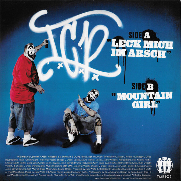 La historia de esta canción titulada aquí «Leck mich im arsch» comienza cuando en agosto de 2021 Jack White contacta con la pareja de raperos Insane Clown Posse y les invita a su estudio (uno de los más particulares del mundo y con un sistema de grabación que mira al pasado, con máquinas en desuso de mediados del siglo pasado). Ellos muy sorprendidos aceptan y White les cuenta que ha escuchado muchos de sus temas y que ha pensado en ellos para una reinterpretación que le rondaba la cabeza desde hace tiempo, una olvidada (a posta) composición de Mozart bastante particular y cargada de humor. ICP aceptan ponerle letra y de la música se encargarían JEFF The Borther, unos fieles amigos de White de Nashville. El dúo compuso la letra rápidamente y las voces se grabaron en una sola toma junto a la cantante Laura Matula (otra habitual del sello). El single se publicó en Third Man Records un mes después (las ventajas de un sello en el que se hace todo de principio a fin) con «Mountain girl» en la cara B, una segunda colaboración está vez con el propio Jack White haciendo la música de la canción.