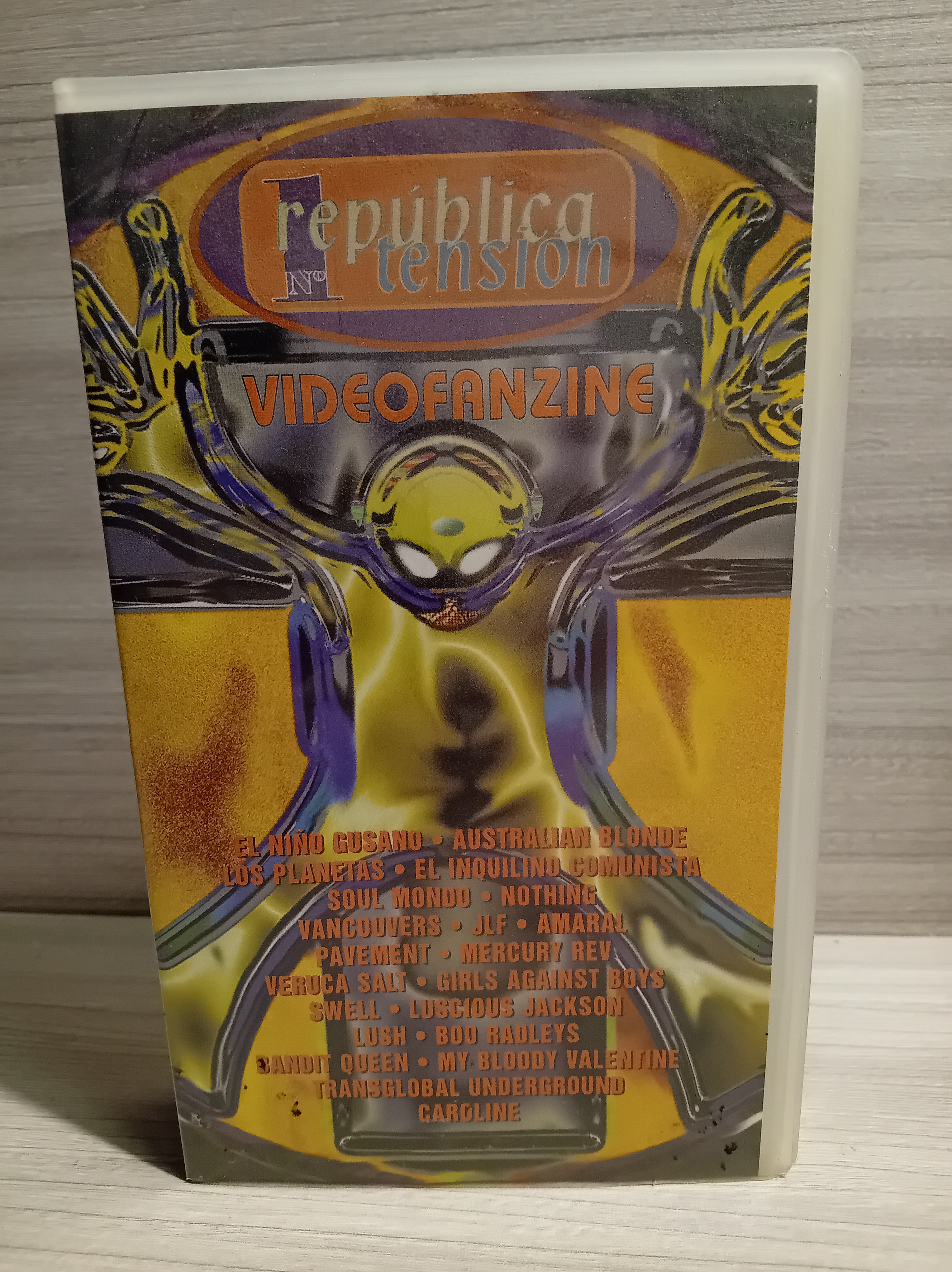 Los años 80 y la primera mitad de los 90 del siglo pasado fue una época espléndida y prolífica en la publicación de fanzines (esas revistas caseras hechas con pasión por enamorados de música, arte, cine, cómic y mil cosas más). Con el tiempo y la tecnología, y antes de la llegada de internet, se fueron haciendo cada vez más elegantes, más cuidados, más profesionales. República Tensión fue un paso más allá. Hecho en Zaragoza por gente que venía de otros fanzines, éste saltó a un formato nuevo, la videotape en VHS. Fue un proyecto ambicioso y muy elaborado que incluso tuvo distribución casi nacional a través de Caroline España pero que no acabó de funcionar, solo publicaron un único número editado en otoño de 1995. El diseño visual de la cinta y de otros apartados de este fanzine corrió a cargo del diseñador gráfico zaragozano José Luis Lizano (Ciclo, Nu Magazine, 17 Posturas, La Nota Discordante…). En República Tensión se podían encontrar tanto videoclips de la entonces efervescente escena indie rock (Mercury Rev, My Bloody Valentine, Pavement…) como entrevistas a grupos tanto locales como nacionales. Aquí dejo un par de ejemplos más que curiosos: la primera entrevista a una jovencísima Eva Amaral antes de editar ningún trabajo (en la entrevista cuenta que va a grabar su segunda maqueta) y la divertida entrevista a otro grupo local, El Niño Gusano, que acababan de publicar su primer álbum «Circo Luso» en Grabaciones en el Mar. Próximamente más.